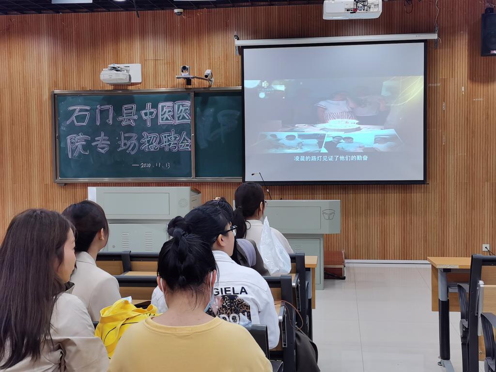 石门县中医医院重视传承中医文化,为与时俱进,注入新血液,2020年11月13日,石门县中医医院在湖南中医药大学含浦校区第二办公楼一楼招聘室召开招聘会。