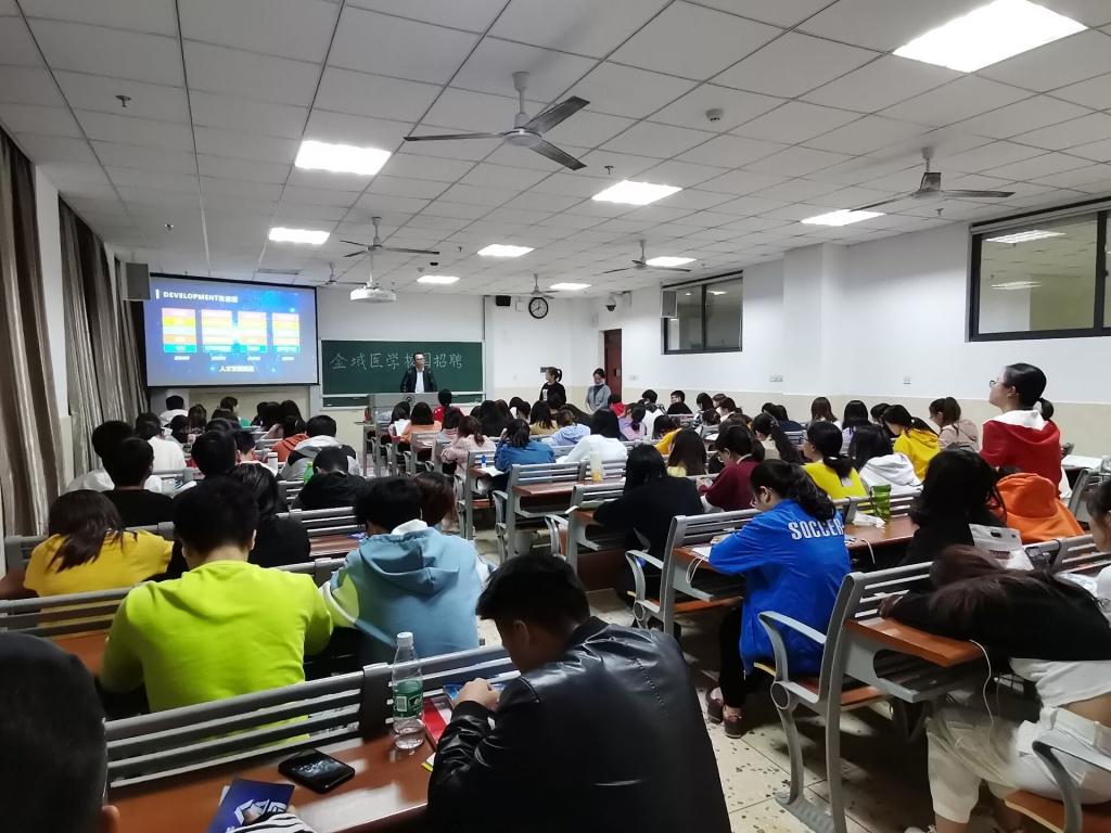 金域医学成就可喜,为拓展多元化、专业化的人才梯队,2020年10月27日晚上19:00,长沙金域检验在湖南中医药大学含浦校区第三教学楼一楼3106教室召开宣讲会活动。金域医学市场部经理许宾宾,集团实验室主管陈偲,集团人事专员曾丹,湖南中医药大学医学院辅导员毛心洁、刘娅薇以及2018级医学检验技术专业约90名学生参加了本次活动。