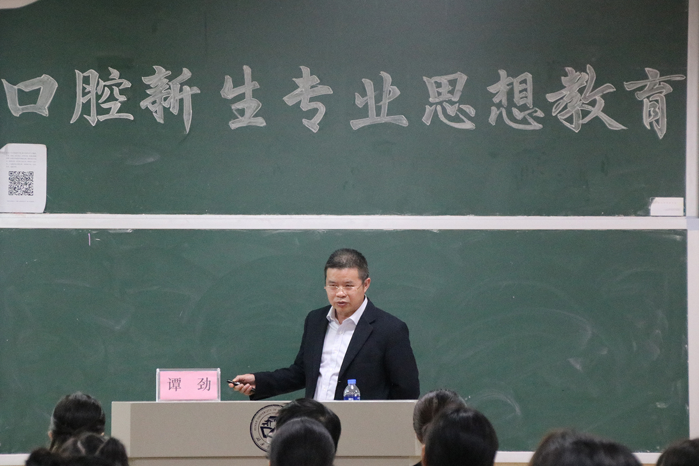 谭劲教授通过介绍口腔专业学科的来源和发展,学校雄厚的师资力量,学校的教学条件、设备、仪器以及专业的就业前景等方面讲述了口腔专业相关情况,让2018级口腔医学专业的同学们对自己的专业有了更深一步的了解,并对自己今后的道路有了初步的规划。
