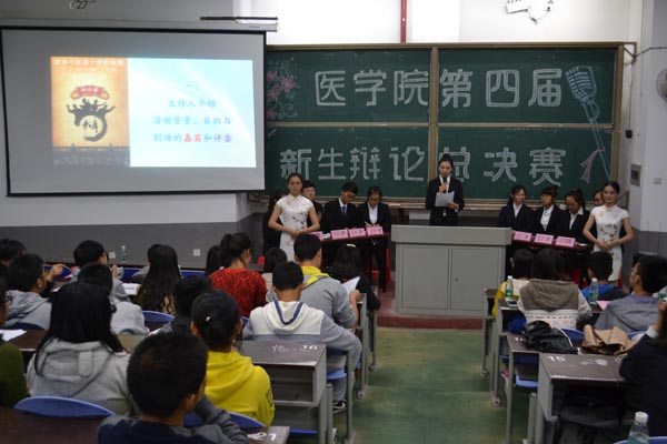 10月29日晚,湖南中医药大学医学院第四届新生辩论赛决赛于1106教室举行。湖南中医药大学医学院第五届团委学生会,校辩论队成员以及部分学生代表共同参与了本次大赛。经过激烈的角逐,2015级临床医学3班荣获第一名。