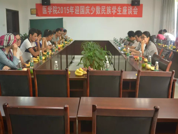9月29日中午,医学院2015年迎国庆促团结少数民族学生座谈会在学院办公室举行。医学院党总支副书记王健、学生管理科老师和20多名少数民族学生代表出席了座谈会。
