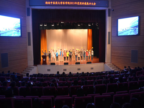 3月23日晚,医学院2015年党团班建展示大会在大学生活动中心举行,我院学生科老师、团委学生会、学生党支部及优秀班集体代表等参加大会。