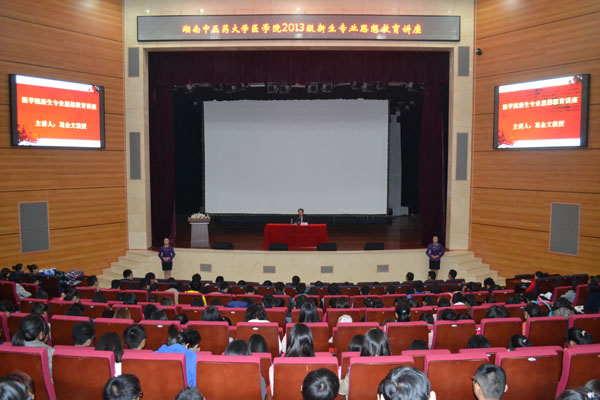 葛金文首先向同学们介绍了学校的悠久历史,借此阐述了因为了解而热爱的道理,要求同学们既然踏入湖南中医药大学,就要和学校结下不解之缘,学校永远伴随着同学们的一生,每个同学都要在求学的历程中产生热爱学校的深厚感情。随后,葛金文通过对自己大学生活的回忆,要求每一个医学生都要热爱自己所学的专业,并给同学们提出了几点建议:一是要救死扶伤,树立良好的医德;二要勤奋学习,掌握精湛的技术;三要学会交流,善于沟通;四要转换方式,具有创新型思维。最后,葛金文希望每一个同学都要做一个健康的人、做一个快乐的人、做一个对社会有用的人。