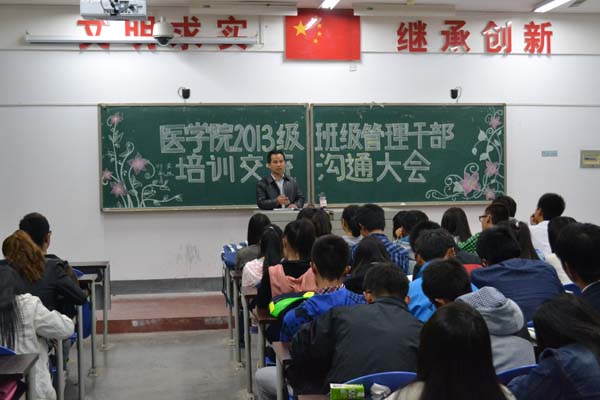 10月16日晚,医学院在2407教室举行了2013级班级管理干部交流沟通大会,医学院学生管理科祁老师、2013级各班班级各部出席了此次座谈会。