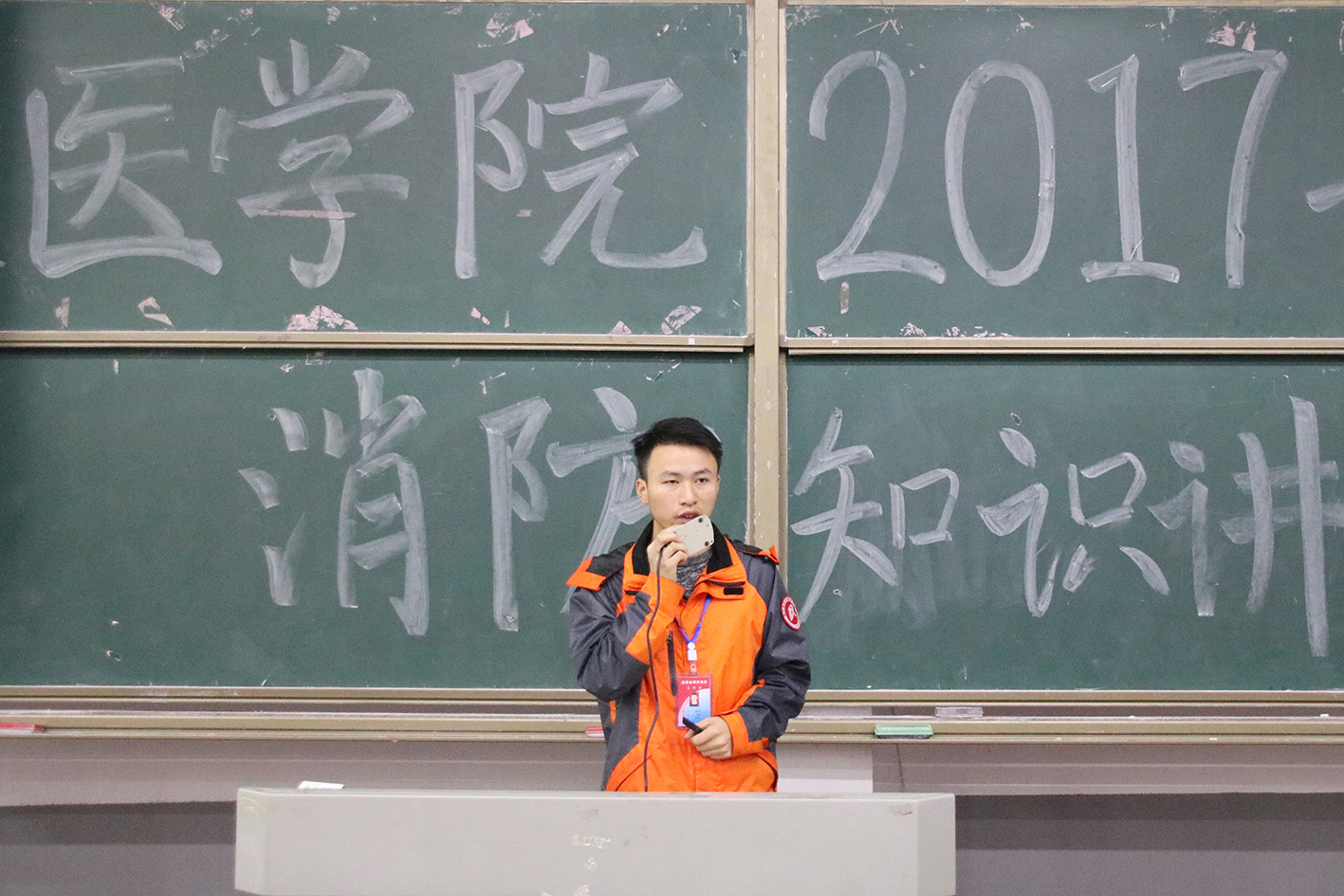 11月29日中午,湖南中医药大学医学院2017年消防演习顺利举行。湖南中医药大学医学院党委书记文红艳、副院长徐广贤、党委副书记王健、学生管理科老师、同伴辅导员和两百多名新生共同参加了此次演习。
