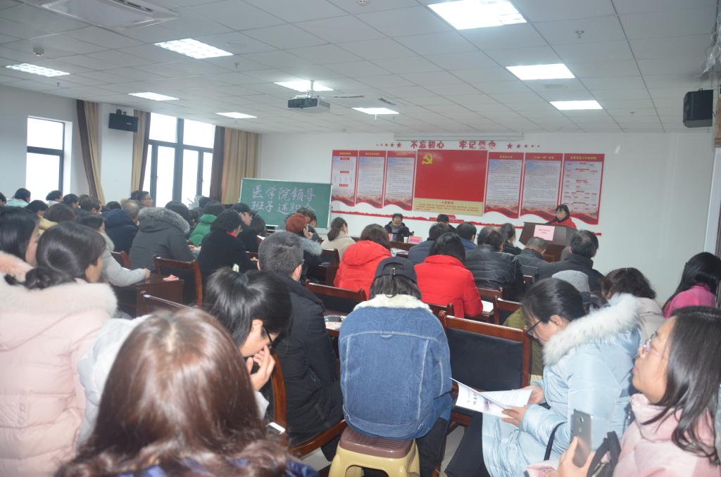 1月3日下午,医学院在会议室召开2018年度基层党组织书记抓党建、处级班子和处级干部年度考核、基层党支部书记述职评议会,大学副校长葛金文及学院全体教职工参会,大学副校长姜怡邓主持会议。