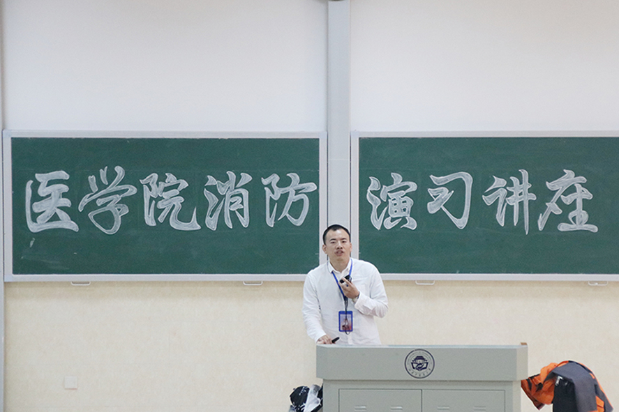 11月19日中午,医学院先后在学院会议室、3216、3217教室和八号学生公寓成功举行消防知识讲座和消防演习活动。医学院党委副书记王健、校保卫处消防科科长罗武、医学院学生管理科李玉冰老师、李轶哲老师、医学院部分教职工及部分2019级同学共同参与了此次活动。