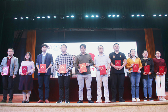 大会伊始,全体在场人员起立,奏唱国歌、校歌。礼毕后,由雷院长领誓,全体新生起立,举起右拳与雷院长一同宣誓。宣誓完毕后,邓院长宣布班主任名单并宣读《湖南中医药大学医学院班主任管理方法》。随后,院领导为2020级新生班主任颁发聘书。接着班主任代表唐群老师讲话。唐老师引用了中国工程院院士、抗疫英雄、“共和国勋章”获得者钟南山的一句话“选择医学可能是偶然,但你一旦选择了,就必须用一生的忠诚和热情去对待它”,表达了对新生们的期望。唐老师希望新生们能够在未来的医学道路上,可以努力做到四点,即厚德、慎独、博学、仁术,为医学事业不断努力。新生代表闫旭上台发言。“与湖中大师友携手而行,不负韶光”是闫同学的愿望,“追求卓越,初心不忘”是闫同学的目标和志向,“鹏程万里,前路康庄”是闫同学对自己和新生们未来的祝愿。至此,医学院2020 级医学生宣誓仪式暨班主任聘任大会到此结束。