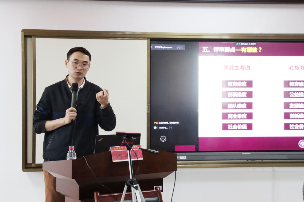 魏科老师为同学们带来了“互联网+”大赛评审的真实经历,分享了参加往届大赛时的所见所闻,并结合案例,对同学们提出几点建议:一、选择合适赛道;二、仔细阅读和理解参赛条件要求;三、领悟各组别项目评审要点和各细分项评审要点;四、注意最新的评审规则变化;五、端正心态:不断学习和思考,爱拼才会赢。