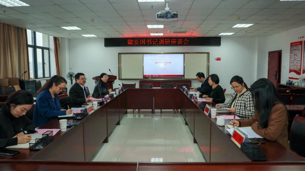 2022年11月21日,校党委书记戴爱国一行4人赴医学院开展调研座谈,校党委委员、组织人事部部长焦珞珈,组织人事部副部长胡敏、党政办公室秘书科科长刘莉陪同调研,医学院在家班子成员及办公室参加座谈。