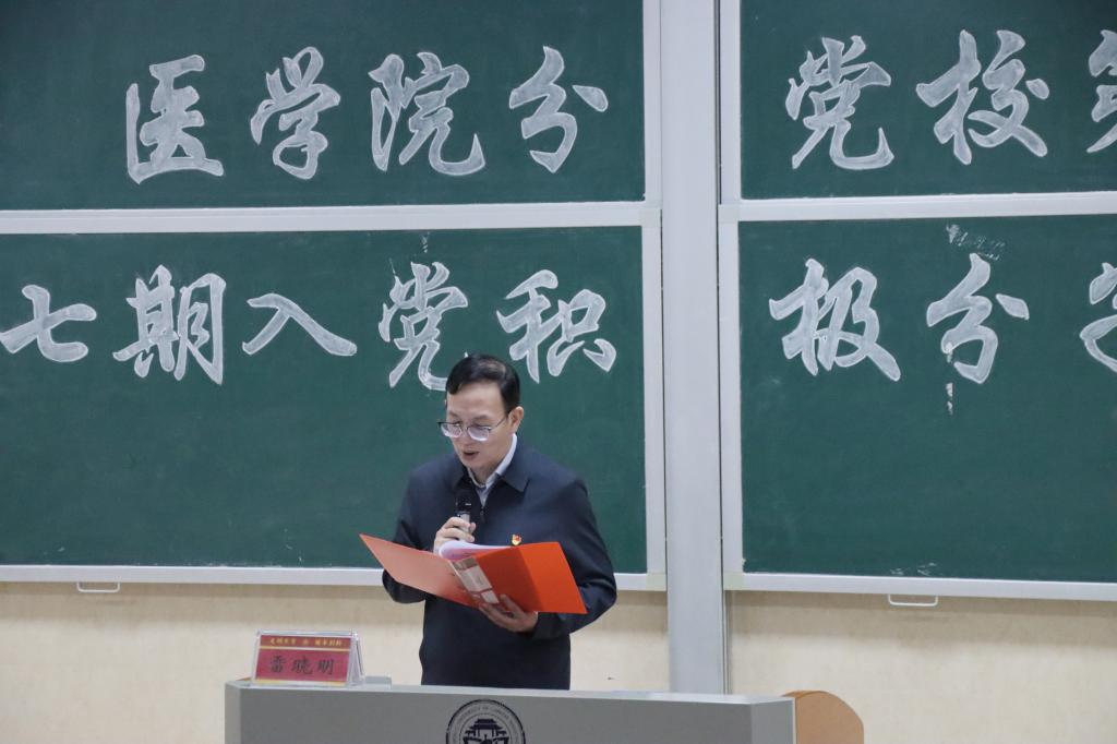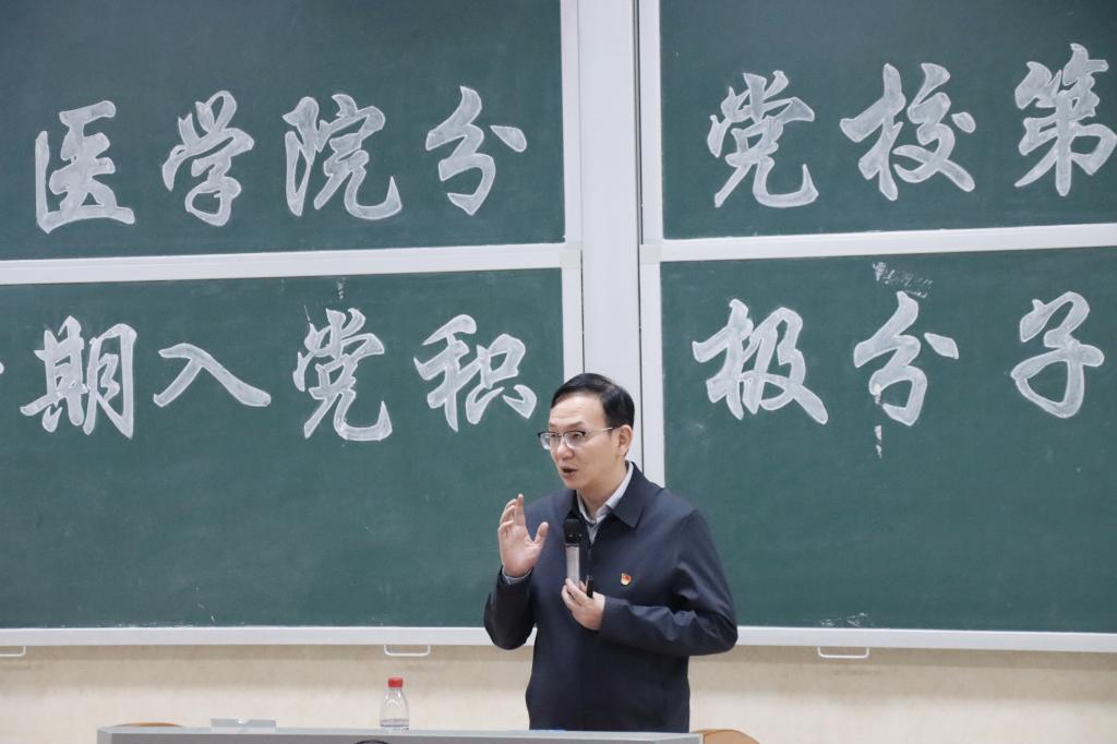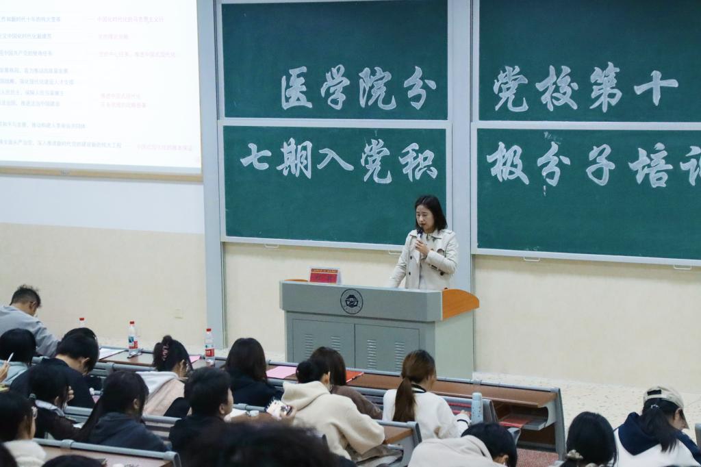 10月27日晚,湖南中医药大学医学院分党校第十七期入党积极分子培训班开班典礼暨首次辅导课于含浦校区济世楼313教室顺利举行。医学院党委书记、分党校校长雷晓明,党委副书记、分党校副校长刘莉,团委书记廖海燕,学生管理科副科长、分党校办公室主任艾力扎提·吐鲁洪,专职组织员颜晔,学生管理科老师、第三学生党支部书记钟小康,学生管理科老师、第七学生党支部书记吕世豪及100余名学员共同出席本次开班典礼。活动由刘莉主持。