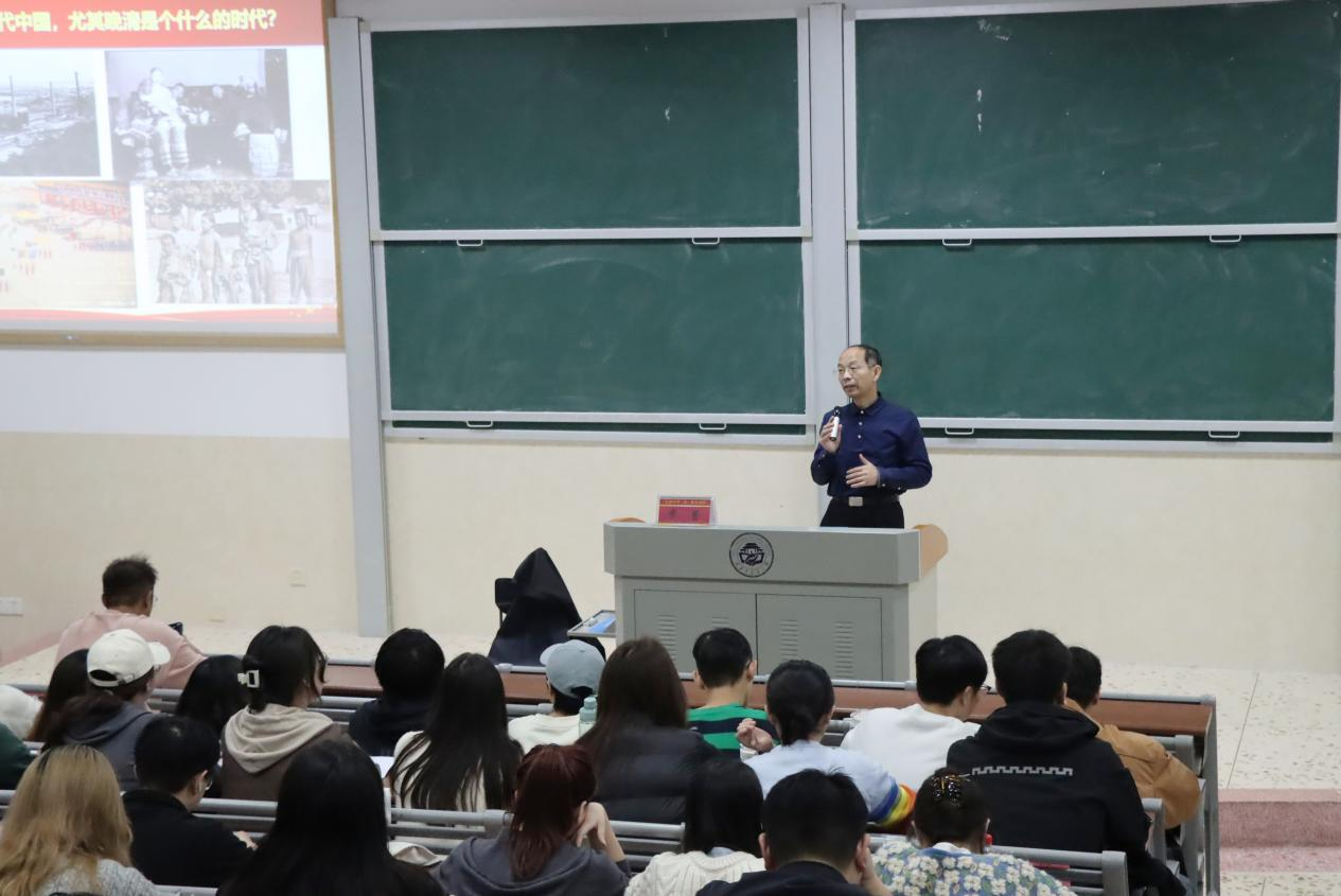谈及伟大建党精神的实践内涵,廖菁分享了李大钊、李汉俊等革命先烈的事迹,以及脱贫攻坚中我校毕业生为公殉职的故事。“李大钊同志在绞刑架前三次拒绝投降,用生命捍卫信仰;我校优秀毕业生方璇同志,作为基层村干部在工作途中不幸牺牲,用行动践行初心。”他指出,不怕牺牲、英勇斗争是共产党人的鲜明特质,“这些牺牲不是空洞的口号,而是体现在血与火的革命实践、生与死的考验之中,是伟大建党精神最真实的底色”。