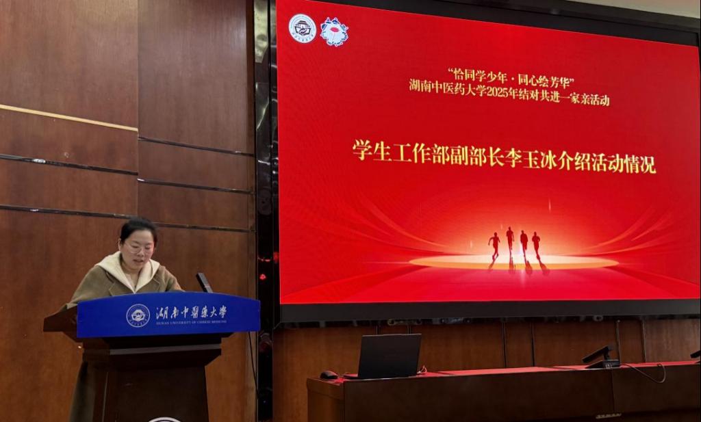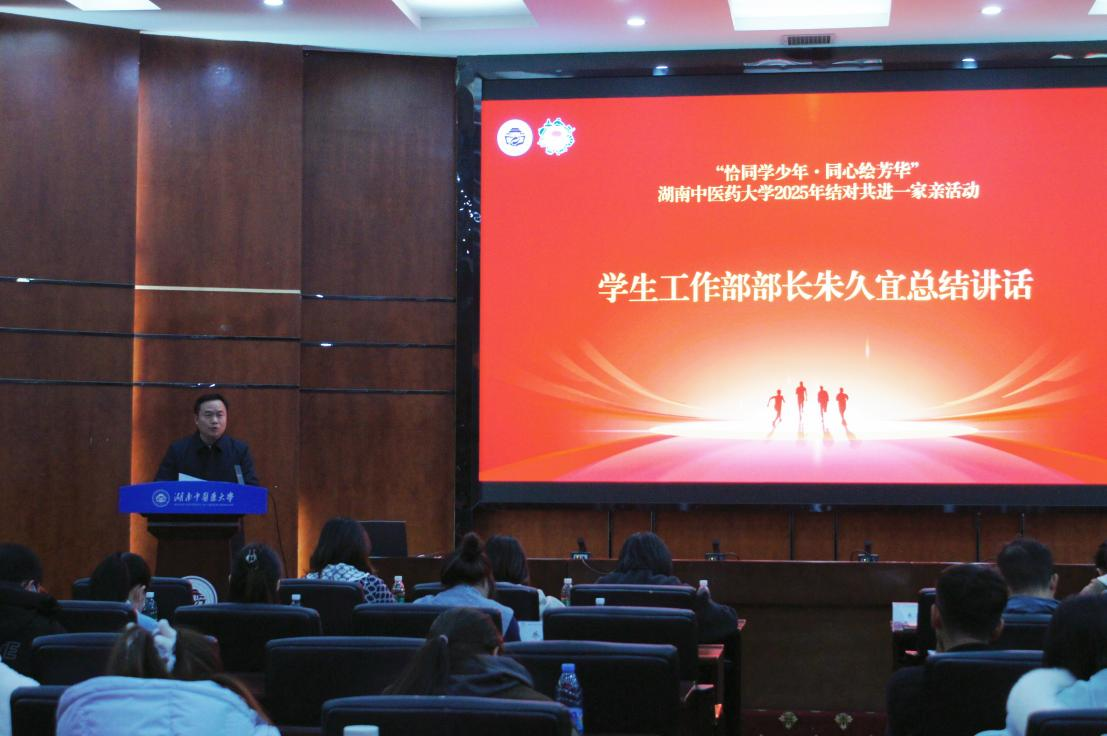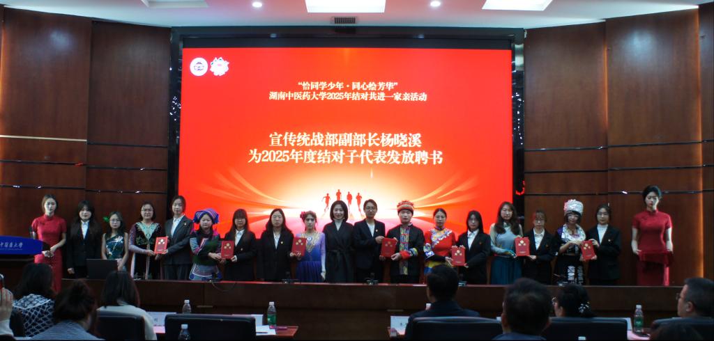 为搭建朋辈互助平台、党团共建的成长平台、弘扬中华民族共同体意识,12月26日上午9:30,湖南中医药大学2025-2026学年“恰同学少年·同心绘芳华”结对共进一家亲活动在国际交流中心学术报告厅举行。活动由学工部主办、合欢花工作室承办,学工部部长朱久宜,宣传统战部副部长杨晓溪、学生工作部副部长李玉冰等校院领导及8个学院新生辅导员出席,全校72名优秀党员与72名少数民族新生结成对子。