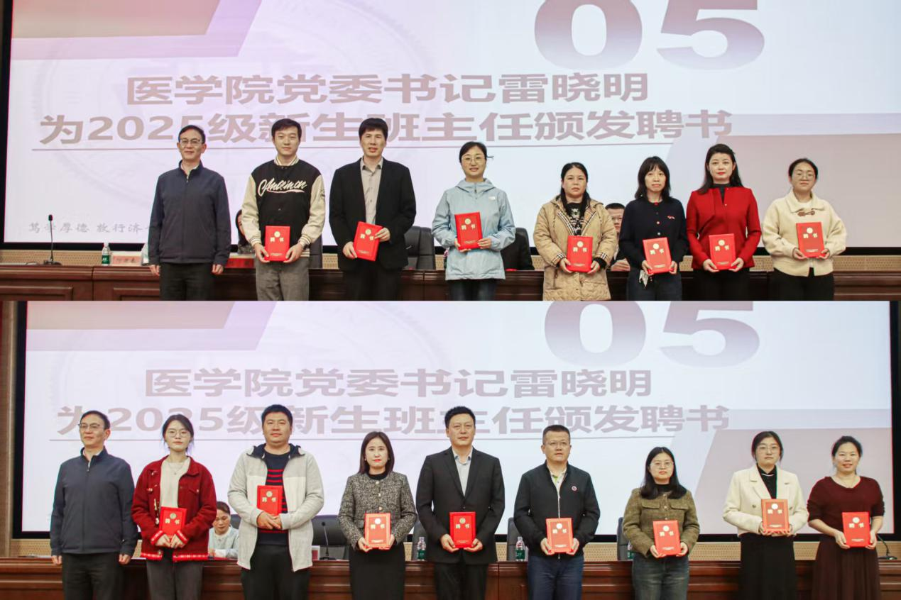 随后,何迎春宣读了2025级新生班主任名单及《湖南中医药大学医学院班主任管理办法》。雷晓明为班主任们逐一颁发了饱含信任与重托的聘书。一纸聘书,承载着一份沉甸甸的责任,象征着学院“成长协同育人”体系的关键一环正式启动。