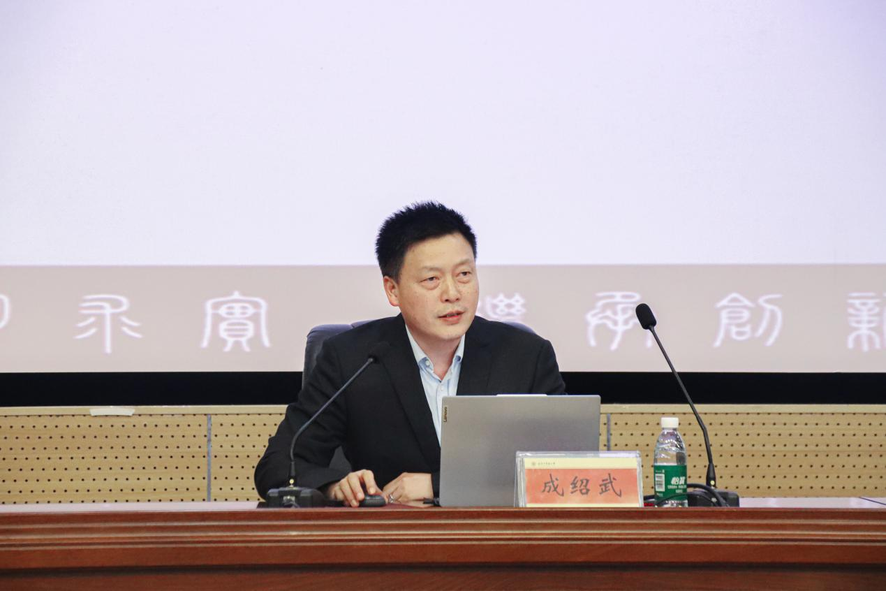 宣誓仪式后,成绍武向新生们系统介绍了学校师资力量,发展历程、机构设置与专业发展情况等,帮助新生全面了解学校,并构建对未来学习平台的宏观认知。