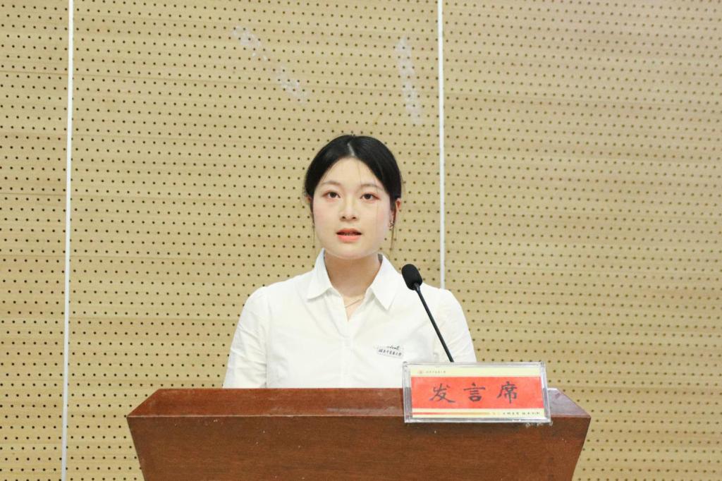医学院2025级新生张容铭作为新生代表发言,她分享了从初入校园的憧憬到经历军训磨砺的深刻体悟,同时引用“笃学厚德、敦行济世”的院训,阐明了自己对医学道路的理解,并表达了将在大学期间积极向党组织靠拢,追求思想进步的决心。她呼吁全体新生共同努力,在未来大学时光里既精进学业,也涵养仁心,成长为能担当守护生命使命的卓越医学人才。