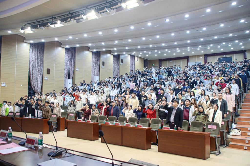 全体与会师生齐唱国歌,激昂的旋律回荡在报告厅内,正式拉开了大会的序幕。