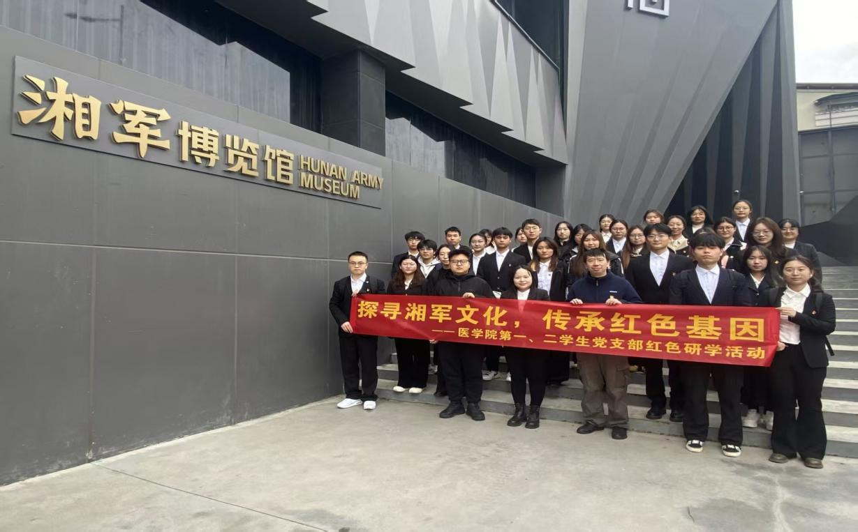 2025年11月23日上午,湖南中医药大学医学院第一、第二学生党支部组织全体党员及发展对象前往湘军博物馆,开展了以“探寻湘军文化·传承红色基因”为主题的沉浸式研学活动。医学院第一学生党支部书记马翔、第二学生党支部书记田喻、2022级及2024级口腔医学专业辅导员邹翔,全体支部成员参与此次活动。