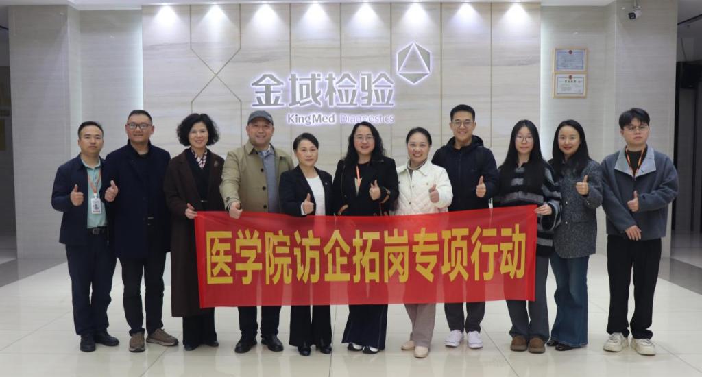 为深入贯彻落实国家关于高校毕业生就业工作的决策部署,精准对接医学检验行业人才需求,深化产教融合、校企合作,2025年12月10日,湖南中医药大学医学院副院长何迎春带队赴长沙金域医学检验实验室有限公司开展访企拓岗专项活动,旨在为医学检验技术专业人才培养提质赋能,为毕业生高质量就业搭建坚实平台。长沙金域医学检验实验室有限公司相关负责人及核心技术团队,与湖南省第二人民医院检验科主任邹国英、预防医学教研室主任杨胜辉、病原生物学教研室主任陈伶俐教授、湖南省第二人民医院检验科教学秘书李勇、医学院辅导员吕俊苇共同参与本次交流。