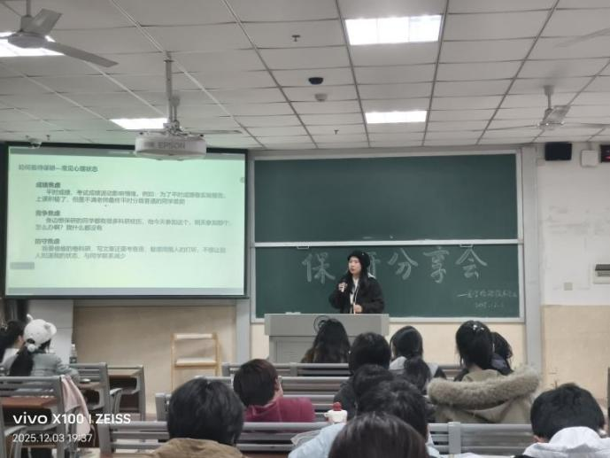 为帮助医学检验技术专业学生明晰保研路径、科学规划学业,2025年12月3日晚,2023级医学检验技术专业保研经验分享会在济世楼302教室顺利举行。本次活动以“医检逐梦,研路领航”为主题,特邀本院保研成功的三位学姐进行经验分享,吸引了23,24级医学检验技术专业同学参与。