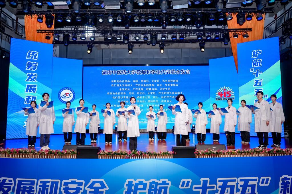 春风送暖,法治同行。4月17日上午,由湖南省卫生健康委指导,湖南省疾控中心(省预防医学科学院)主办,学校资产与实验室管理处、校团委、医学院共同承办的2026年《生物安全法》进高校宣传教育活动在含浦校区举行。活动以“统筹发展和安全,护航‘十五五’新征程”为主题,副校长张玉芬、省卫生健康委员会科教处处长李强等省市相关部门领导、专家出席,师生代表400余人参加。医学院作为承办单位之一,积极组织师生参与活动筹备、现场协调及科普展示,展现了学院在生物安全建设中的责任与担当。